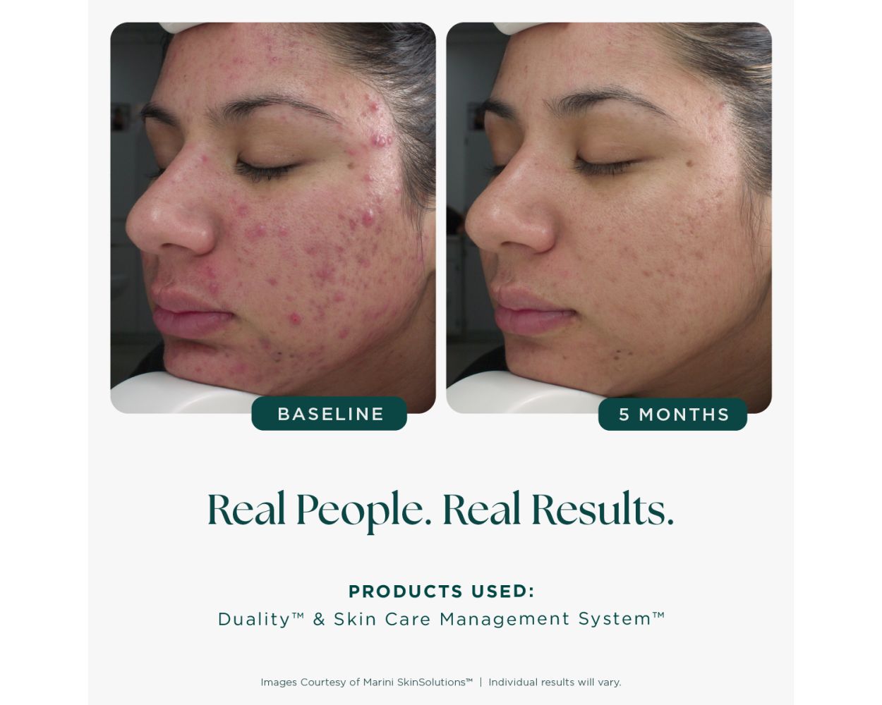 Serious acne control and dramatic benefits to aging skin, in one amazing product. Its unique dual chamber dispensing solution combines some of the most proven, yet previously incompatible, technologies in one product. The maximum allowed percentage of ultra-micronized benzoyl peroxide, highly concentrated all-trans-retinol, green tea extract, anti-aging peptides, advanced hydrators and antioxidants deliver unparalleled results in an easy to use solution. Age Intervention Duality addresses even the most stubborn adult acne while simultaneously minimizing the appearance of fine lines and wrinkles.